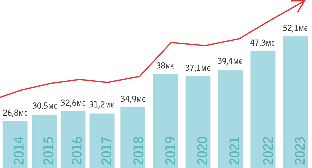 Entre los años 2019 y 2023, Durero aumenta la facturación sobrepasando los 50M€.